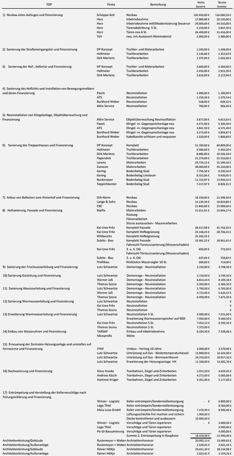 Und natürlich handelt es sich auch um eine Sonderumlage, wenn es um die Sanierung des gesamten Gemeinschaftseigentums geht - wie es bei vielen von der TARSAP angebotenen Immobilien der Fall ist.